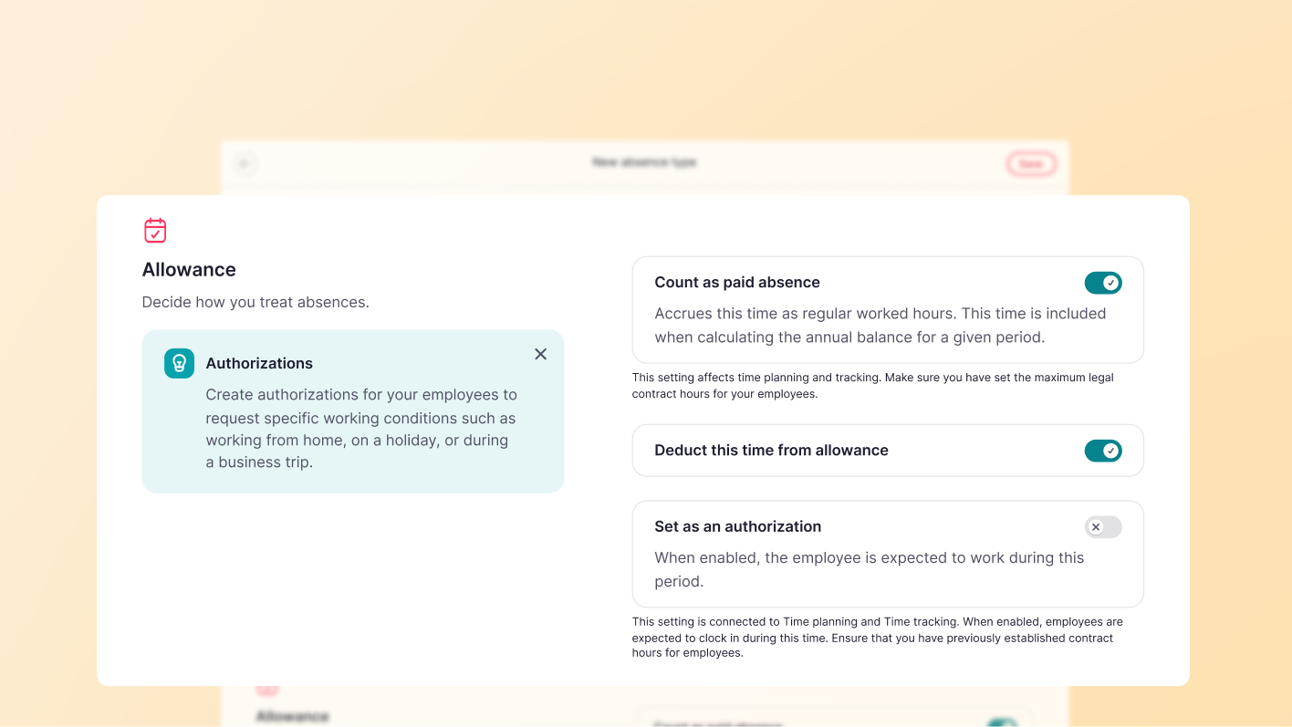 Within the Time Off settings, it is now possible to designate both new and existing absences as paid. If this is included in their labor agreement, employees can request paid absences - that won’t deduct time from their time off allowance. Instead, these absences will count as effective worked time.